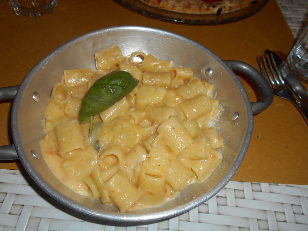 Si comincia con delle mezze maniche pasta e patate, un grande classico della cucina campana.